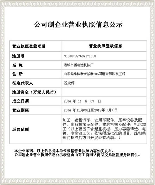 • 公司簡介      諸城市福瑞達機械有限公司 是一家專業(yè)開發(fā)設(shè)計,生產(chǎn)制造畜禽屠宰設(shè)備的私營企業(yè).位于山東省諸城市龍都工業(yè)園,緊靠206國道,膠新鐵路,交通十分便利.       我廠現(xiàn)有中,高級技術(shù)人員數(shù)名,有多年的設(shè)計與制造畜禽宰殺機械的理論和經(jīng)驗.可根據(jù)客戶的要求進行前期的工藝設(shè)計及流程布局,中期的設(shè)備安裝與調(diào)試,以及后期的售... [詳細(xì)內(nèi)容]